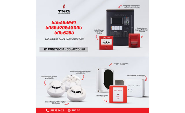TNG ჯგუფი - სახანაძრო უსაფრთხოების სისტემის TC Fire Tech-ის ექსკლუზიური წარმომადგენელია საქართველოში. კომპანია გთავაზობთ TC FireTech-ის პროდუქციის სრულ ასორტიმენტს, რომელიც სრულად შეესაბამება საერთაშორისო სტანდარტებს და აკმაყოფილებს ნებისმიერი ტიპის შენობა-ნაგებობის სახანძრო უსაფრთხოების მოთხოვნებს.